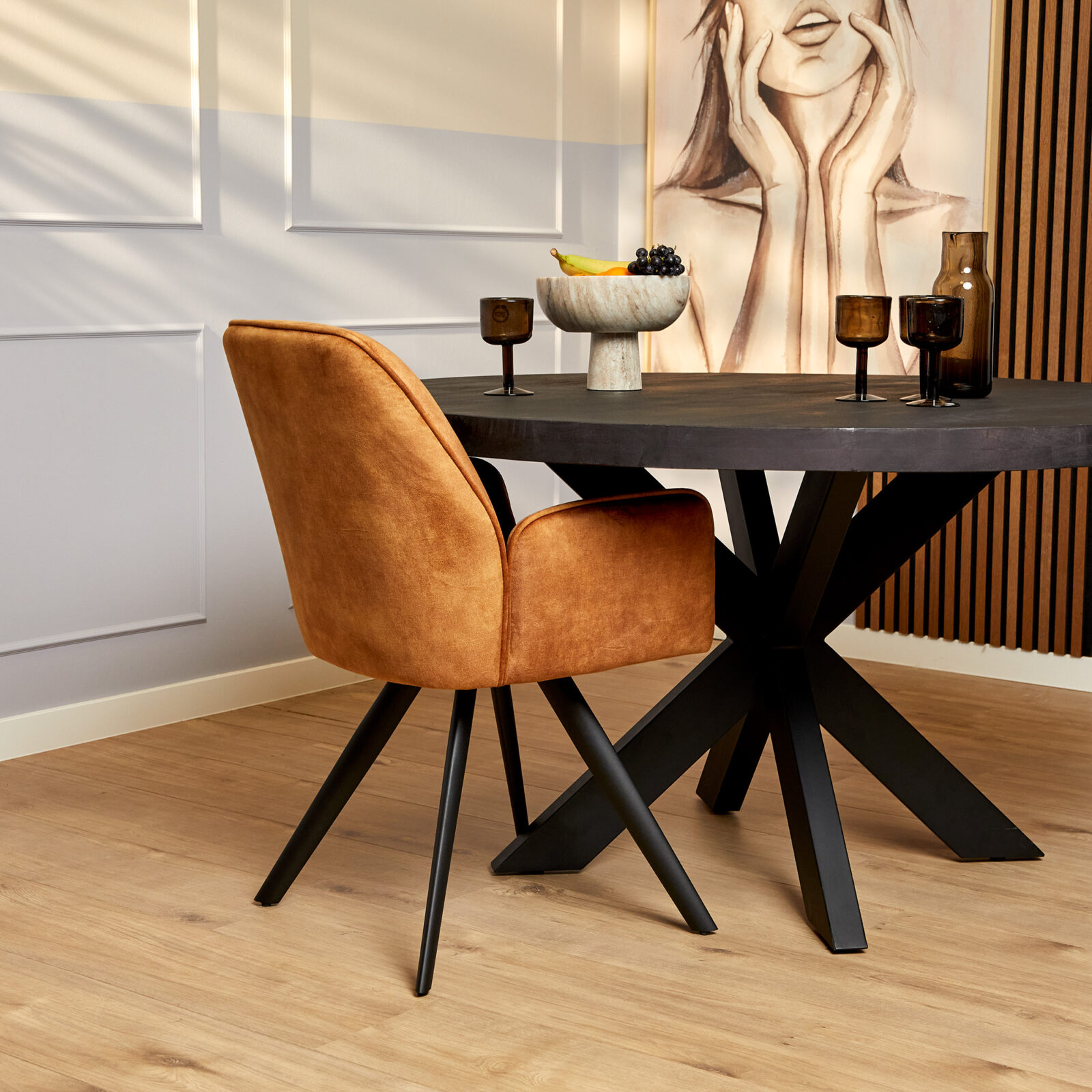Esszimmerstuhl „Nova“ — elegant bezogen mit hochwertigem Samtstoff. Der Stuhl verfügt über feste Beine mit schwarzer Pulverbeschichtung und überzeugt durch klare Linienführung sowie komfortable Polsterung. Hinweis: Verkaufseinheit jeweils 2 Stück.